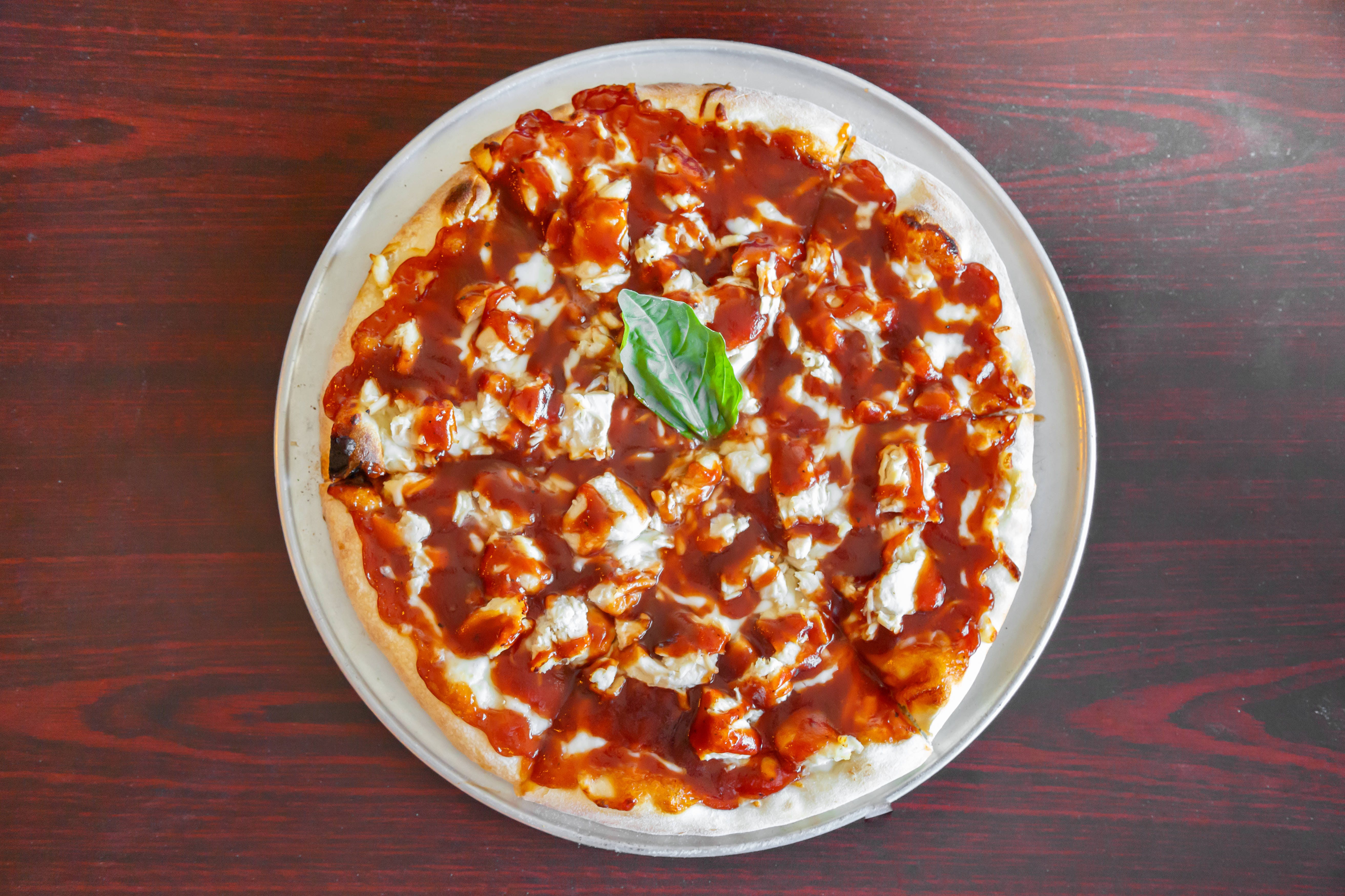 Mozzarella cheese, spicy Buffalo sauce, chicken and blue cheese.