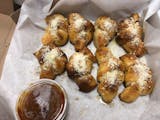 Knots with parmesan garlic butter & side tomato sauce.
