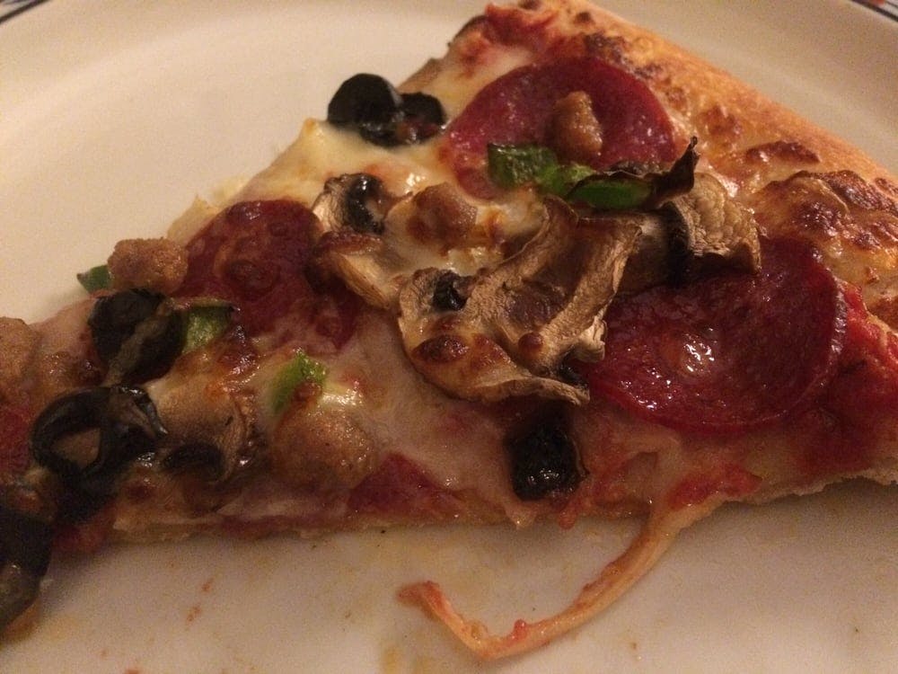 Pepperoni, sausage, mushrooms, onions, black olives, green peppers & extra mozzarella cheese on Citipizza traditional sauce