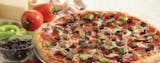 Our secret recipe pizza sauce topped with pepperoni, Italian sausage, ground beef, Italian salami, ham, bacon, and topped with an extra amount of our special blend of 100% fresh natural cheeses.