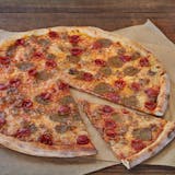 Flippin' Pizza sauce, 100% whole milk mozzarella, pepperoni, sliced meatballs and sausage.