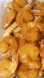 Six shrimp, one fish fillet with a side of tartar & hot sauce.