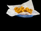 Fresh calamari rings lightly dusted with flour and fried to golden brown. Served with a side of marinara sauce