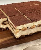 Alternating layers of mascarpone cream and espresso-dipped lady fingers dusted with coca powder.