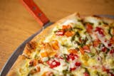 Mozzarella, alfredo sauce, garlic, chicken, roasted peppers & mushroom.