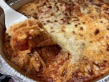 Ziti with meat, mozzarella and tomato sauce baked to perfection in our oven.