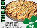 Corned Beef, Swiss Cheese, Mozzarella Cheese, Light Sauerkraut, Garlic Oil Sauce, 1000 Island Drizzle.