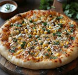 Mayo & sour cream sauce, Fire Roasted sweet corn, Chicken Mozzarella, Dusted with chilli powder, drizzled with chipotle sauce, cotija