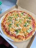 Tandoori chicken, mozzarella, veggies, pizza sauce.
